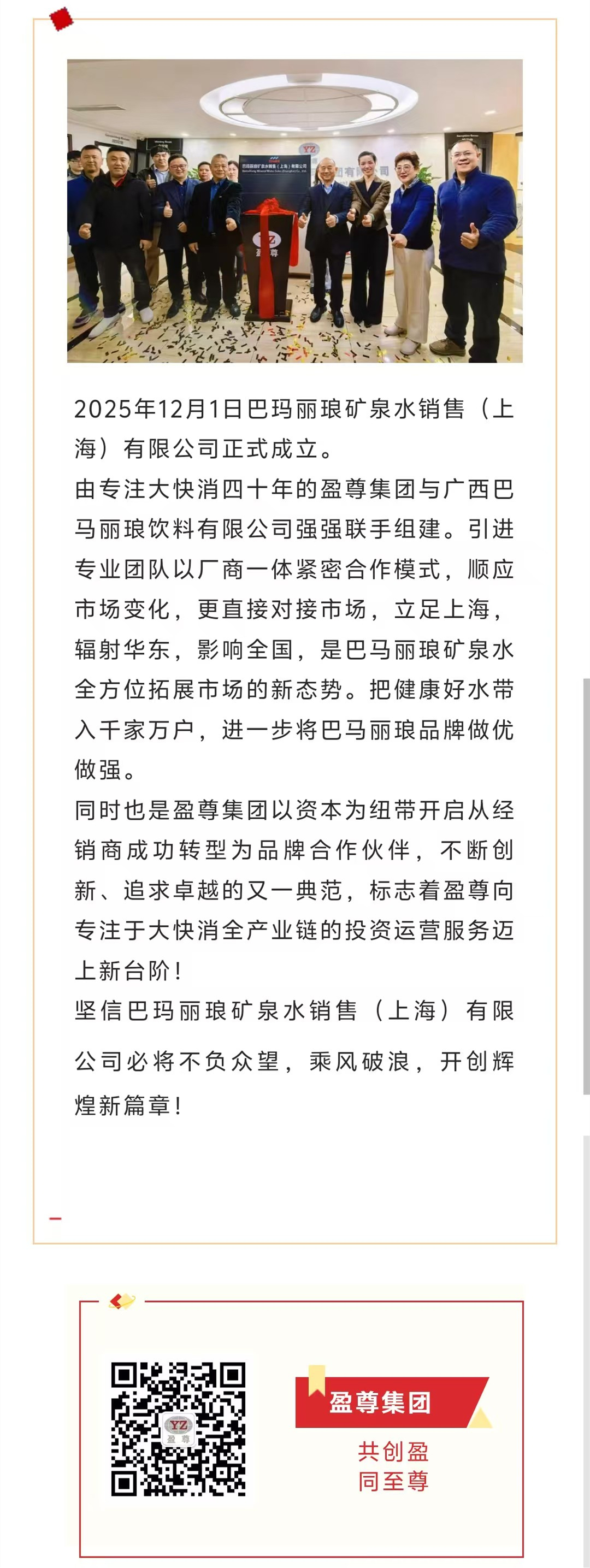热烈庆祝巴玛丽琅矿泉水销售(上海)有限公司成立